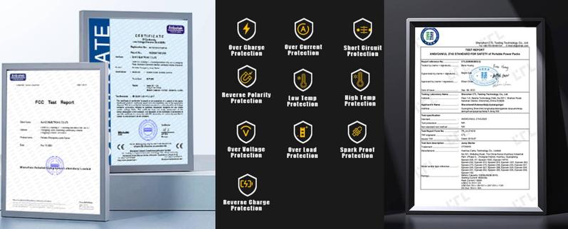 Safe and easy to use car jump starter and starter pack, requires you to clip in the positive and negative poles correctly for use, red is positive and black is negative, can be safely connected to any 12 volt gasoline car.